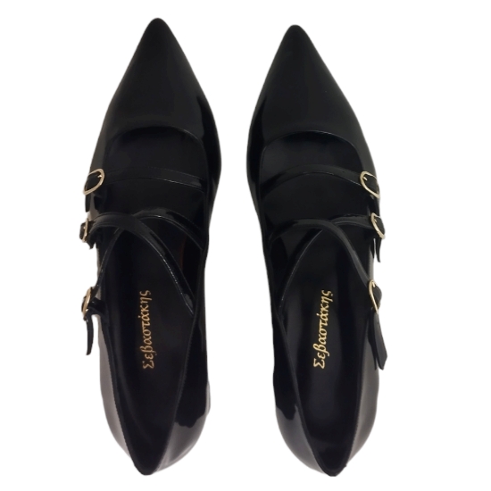 ΣΕΒΑΣΤΑΚΗΣ 061 Λουστρίνι Δέρμα Μπαρέτες Μαύρο