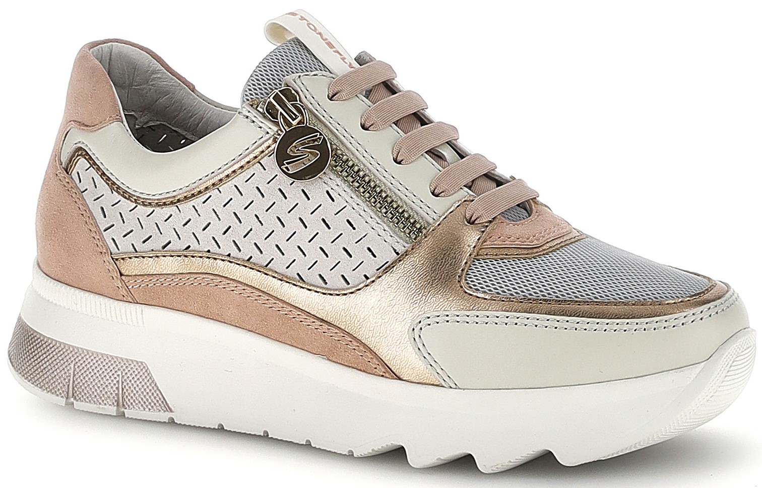 STONEFLY 223583 SPOCK 50 BT1 Δερμάτινα Ανατομικά. Sneakers Ροζ Γκρι