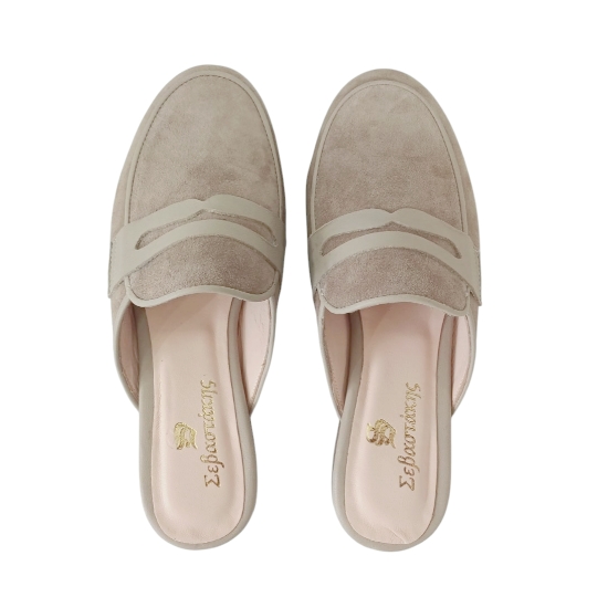 Καστόρι δέρμα mule με δερμάτινη φόδρα και δερμάτινο πάτο.