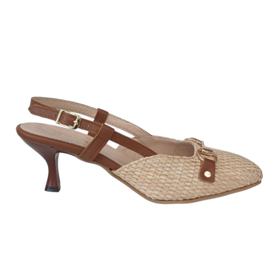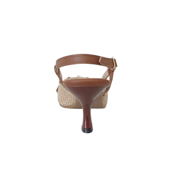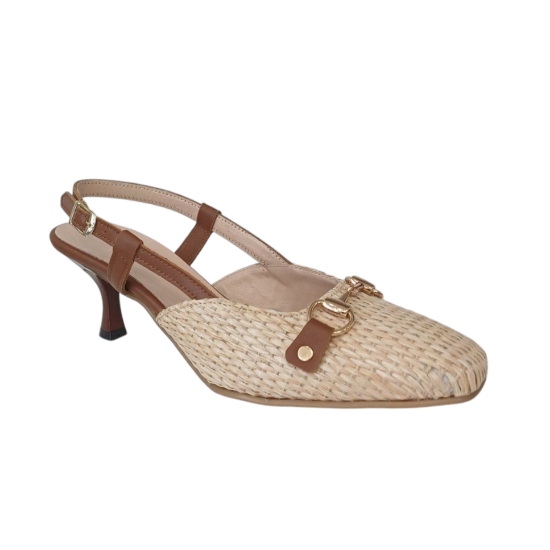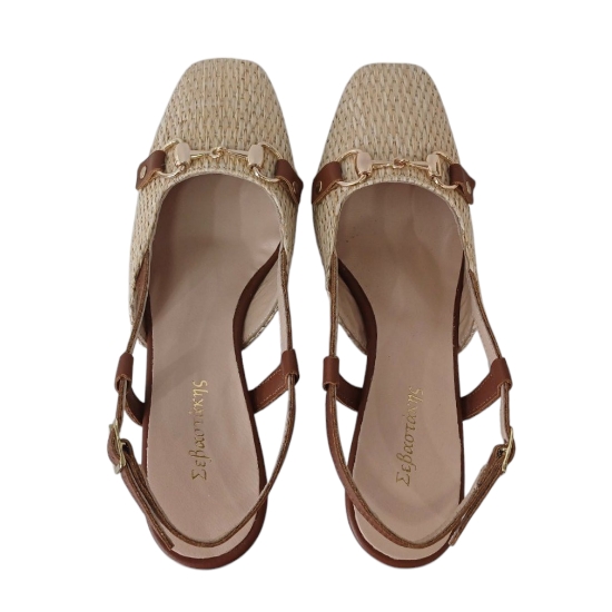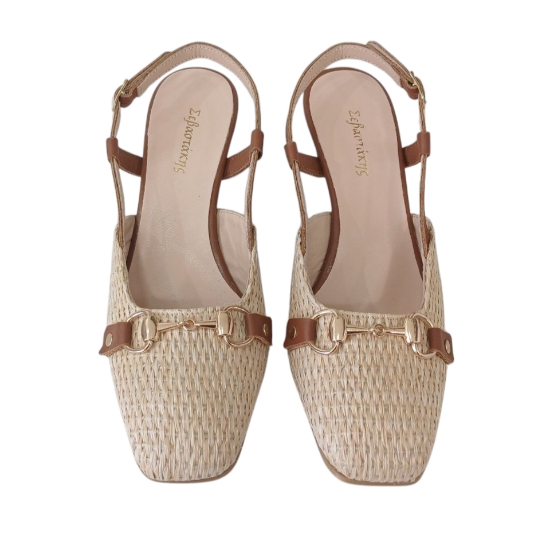 Δέρμα και ψάθα σανέλ με δερμάτινο πάτο και δερμάτινη φόδρα.